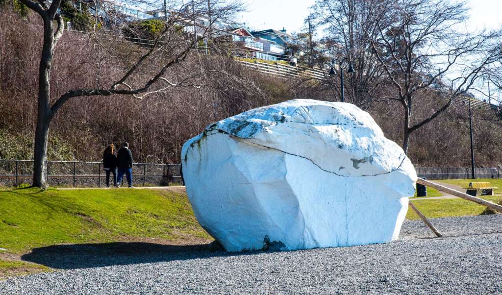 The city of White Rock, BC, encompasses the Semiahmoo First Nations Reserve, though they are governed separately. White Rock takes its name from a large white rock on the beach below the city. The rock was deposited by glacial action during the last glacial period. For many years, it was kept white by the guano of shell-fish eating seabirds, and was used as a beacon by ships in the bay. More recently, it is painted white by City crews, though it is often the victim of graffiti. A Semiahmoo origin legend describes the reason for the existence of the rock at the western end of the Reserve.