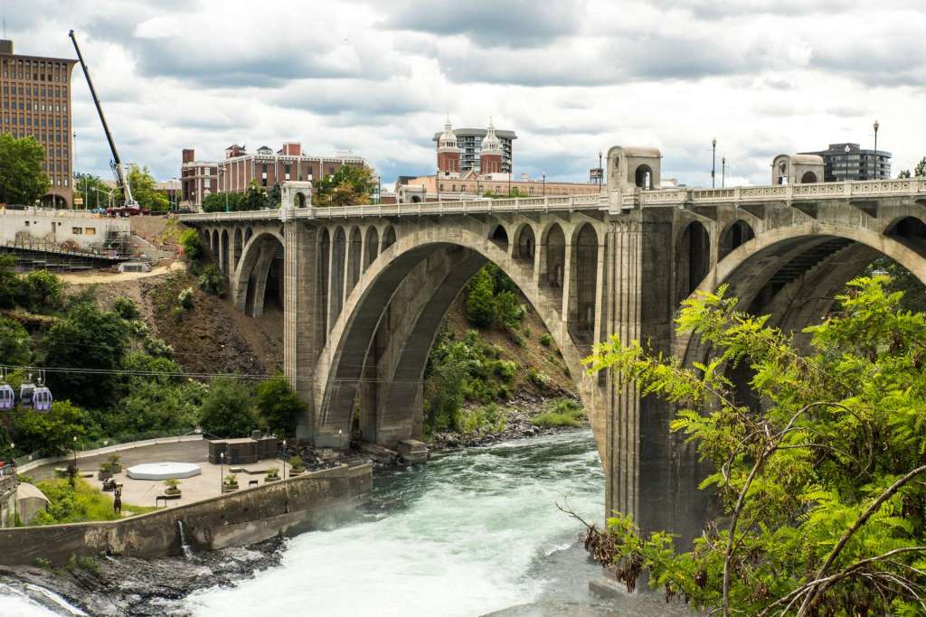 This is the third bridge on this site in Spokane. The first, a rickety wooden bridge built for horses and wagons in 1889, burned in 1890.