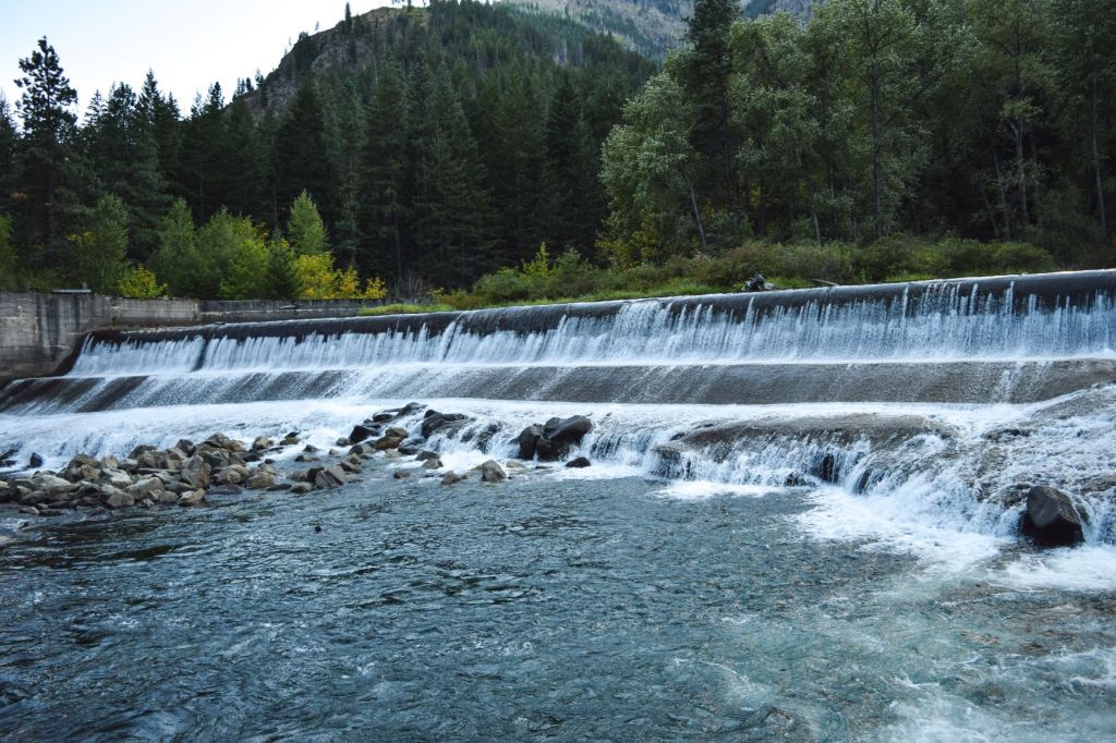 In the image on the left below, the Wenatchee River rolls over the Tumwater Canyon Dam on its way to greet the mighty Columbia River in Wenatchee. In 1909 when it was built, the dam was part of the largest hydroelectric project west of Niagara Falls.